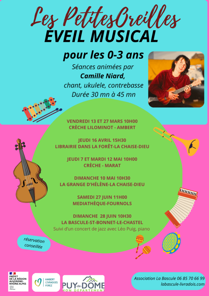Les Petites Oreilles seront animées par Camille Niard, musicienne, chanteuse, médiatrice. Les séances seront complétées par des musiciens invités.